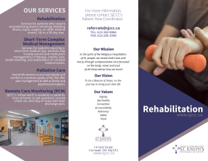 At SJCCC, we provide inpatient rehabilitation services to adults who require reconditioning and/or retraining following illness, injury, surgery, or a decline in health and mobility. Our approach to care is to enable independence by promoting activity, increasing strength and endurance, and developing the ability to manage daily routines. Individual length of stay varies depending on the patient and their goals. A rehabilitation stay can range from a minimum of two weeks up to a maximum of 90 days.